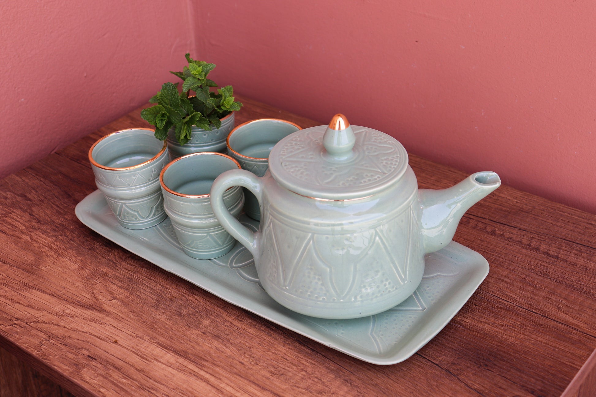 Gießen Sie mit jedem Tropfen aus unserer handgefertigten marokkanischen Teekanne Tradition und Schönheit ins Glas.